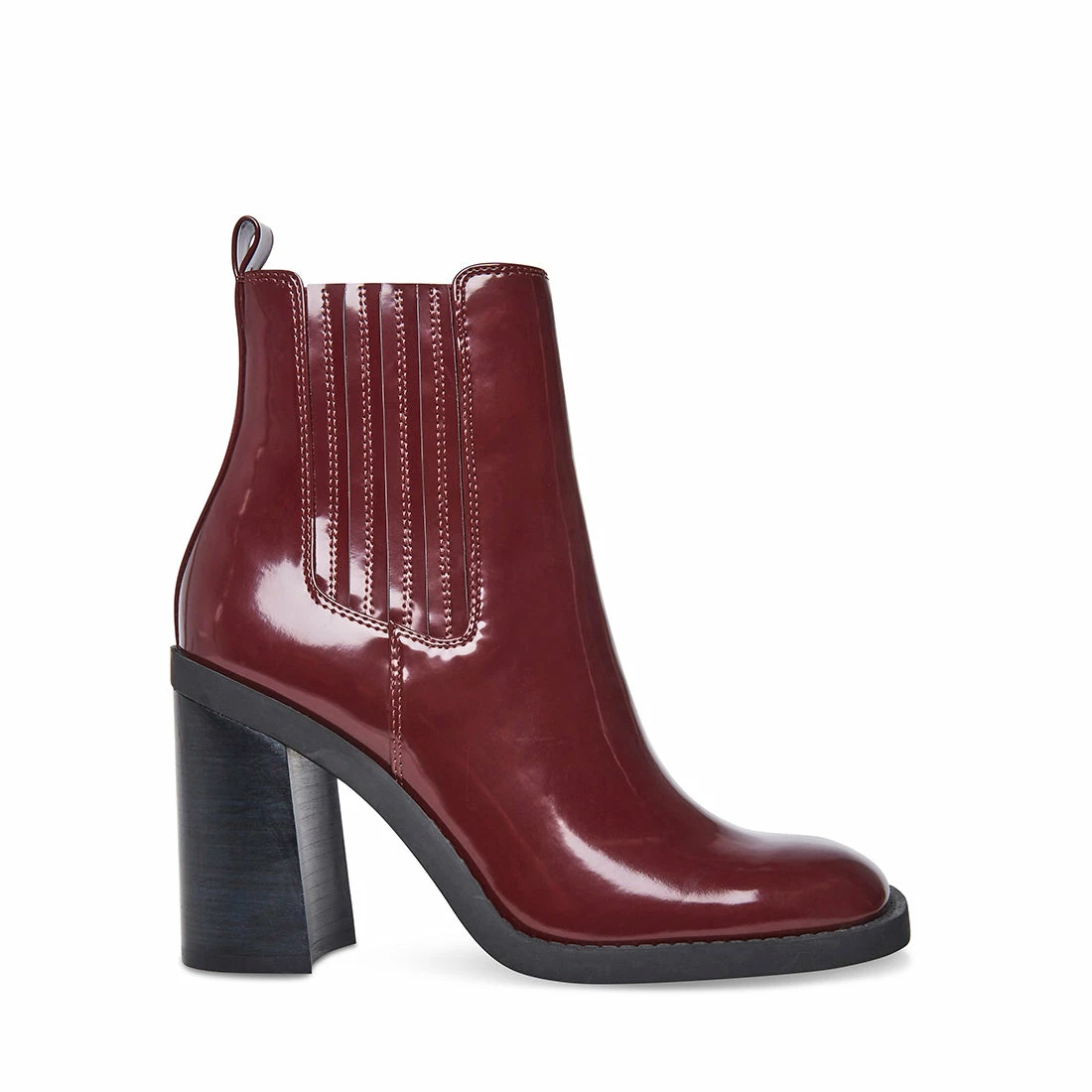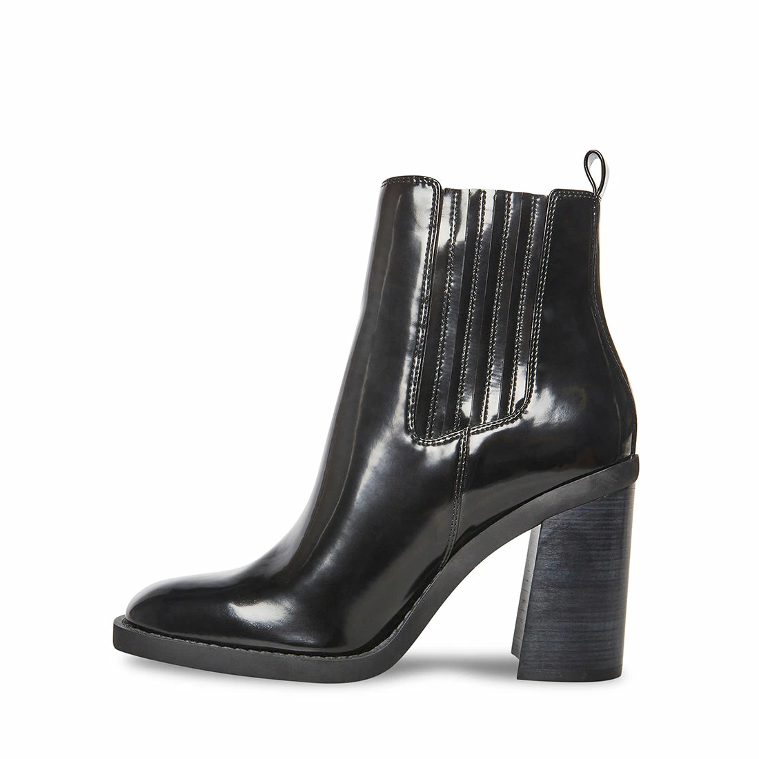 ACKER is the wardrobe staple we can’t get enough of. This shiny Chelsea boot has a stacked block heel and features elastic side panels for convenient on and off.