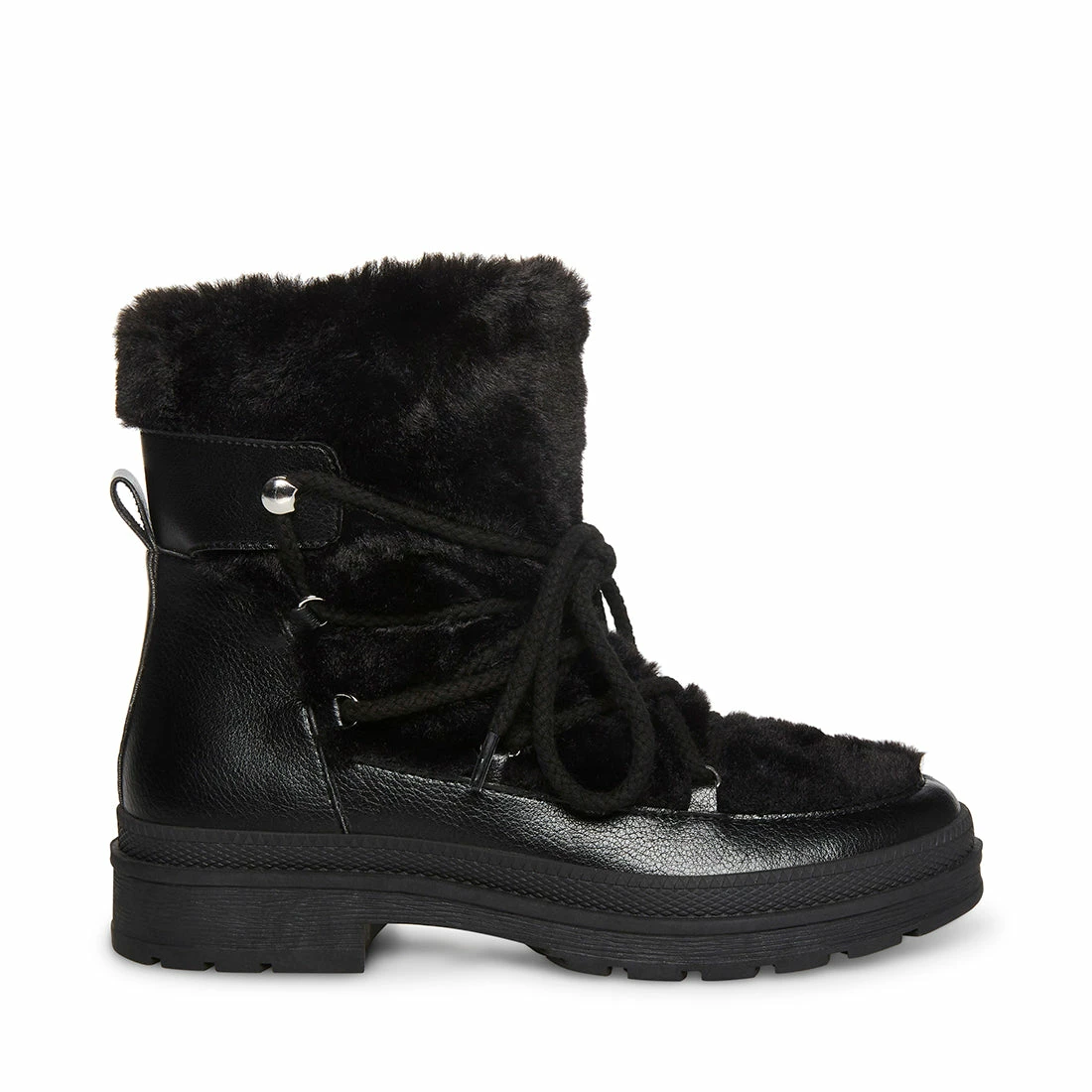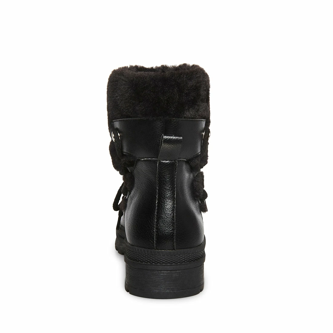 - Vegan leather and faux fur upper material