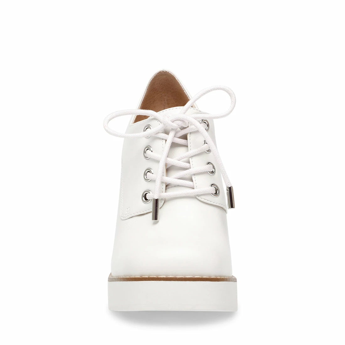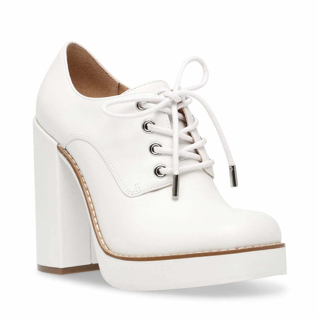With a towering heel, platform sole and clean tailored upper, the TRISTIE lace-up serves a super-snazzy look and lots of frame-boosting lift. Rock this sharp new dress shoe in pretty white or shiny croc-embossed black.Â