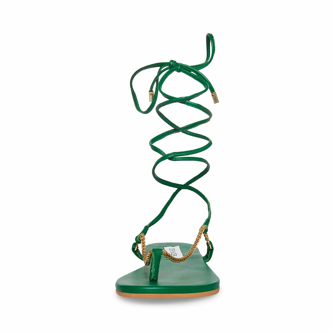 Nail that whole sun kissed Grecian goddess look in TYRA. This stunning flat thong sandal features chain details and laces that tie up your leg.