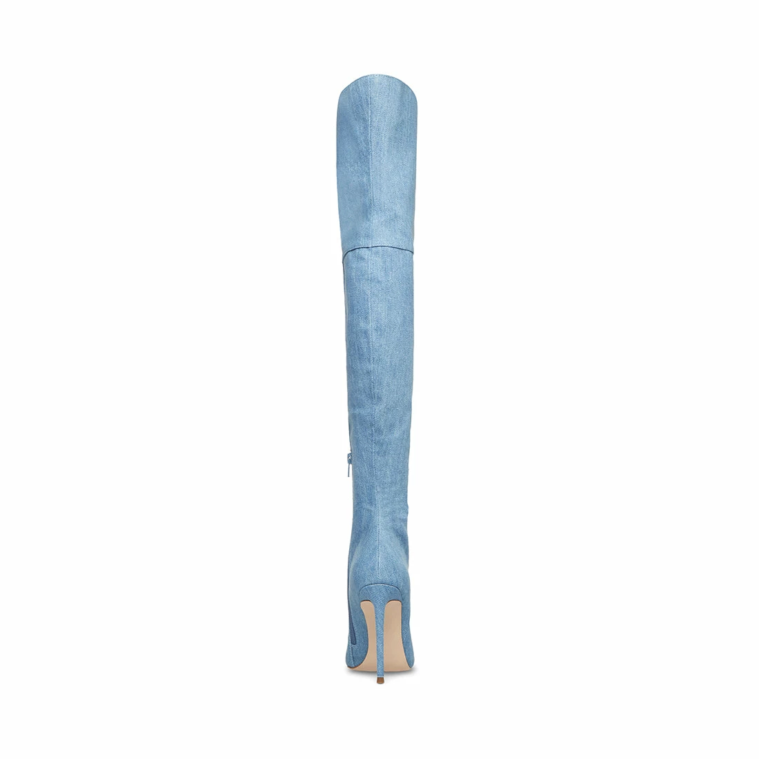VAVA-voom! Casual denim surfaces relax this stilettoed boot for a look that’s sexy without trying too hard. Â