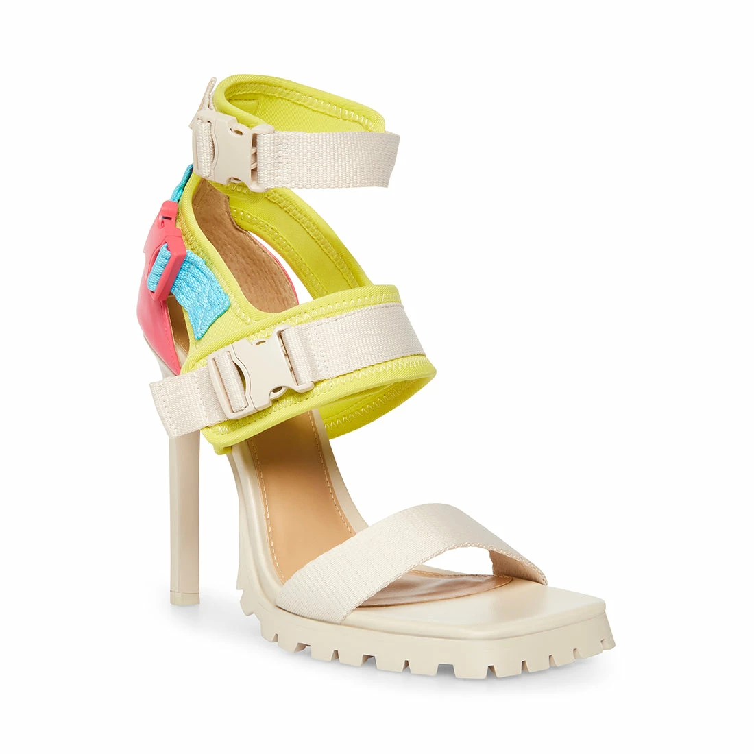 Street and sport are officially a thing with VIBING. This is the sandal you can’t ignore, featuring colorful webbing straps with snap buckles and a tall stiletto heel.